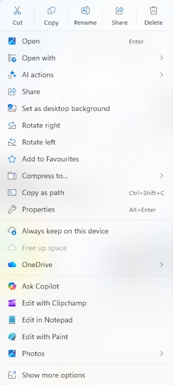 Right‑click menus have been redesigned too. They’re generally shorter, cleaner, and easier to scan. As part of keeping the menus shorter the option available ar chosen more carefully.